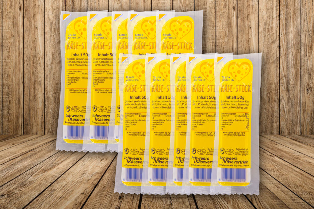 Praktische Gouda-Käsesticks in 10er und 20er Verpackungseinheiten